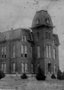 Austin College's founding president was Irish-born Presbyterian minister Samuel McKinney, who served as the school's president a second time from 1862 to 1871.[11] Under the tenure of the fourth president of Austin College, Reverend Samuel Magoffin Luckett,[12] Austin College suffered several yellow fever epidemics and complications related to the Civil War. Texas Synod of the Presbyterian Church decided the college would be relocated to Sherman in 1876. Construction of the new campus in north Texas came in the form of "Old Main," a two-story, red brick structure, which occurred between 1876 and 1878. Struggling with the Long Depression. Austin College saw little improvement to its building or grounds during the late 1870s; as such, Samuel Luckett resigned his position as president. From 1878 to 1885, the college continued to struggle from the aftershocks of economic depression; with an increasing debt and shrinking student body, the college turned to its 7th president, Reverend Donald MacGregor. A shrewd and well connected businessman, President MacGregor relieved a great deal of the college's debt and returned operations to normalcy. After MacGregor's death in 1887, the college welcomed President Luckett back to the campus. Throughout his second term as president, Samuel Luckett adopted a military program, grew the student body, introduced a YMCA chapter, established intercollegiate athletics and Greek fraternities, and added two wings to Old Main.