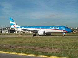 An Embraer 190 taxiing at Aeroparque Jorge Newbery in 2011. The airport is the only hub for the airline.