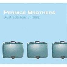 Australia Tour EP 2002 is an EP released by The Pernice Brothers, consisting of reworked, "stripped-down" versions of songs from the band's first two albums (Overcome by Happiness and The World Won't End). The songs were recorded during an Australian tour in January 2002. The track listing on the CD release is incorrect, with "All I Know" listed as track 2 and "Flaming Wreck" listed as track 3. The correct track listing is below.