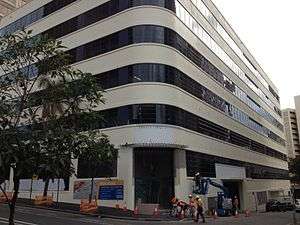 Notable examples include: Sydney Masonic Centre/Civic Tower (Sydney); AAPT Centre (Sydney); Sydney Law School (Sydney); Cameron Offices (Canberra); High Court of Australia (Canberra); State Library of Queensland (Brisbane); Queensland Performing Arts Centre (Brisbane); Law Courts (Brisbane); Suncorp Metway Plaza (Brisbane); National Gallery of Victoria (Melbourne); Total carpark (Melbourne); World Trade Center (Melbourne); Harold Holt Memorial Swimming Pool (Malvern, Victoria); St Kilda Public Library (St Kilda, Victoria); Plumbing Trades Employees Union of Australia Building (Melbourne); University of Melbourne Faculty of Engineering (Melbourne); Metropolitan Fire Brigade (East Melbourne, Victoria); R.A.W. Woodgate Centre (Kew, Victoria); UTS Tower (University of Technology, Sydney); St Anthony's Church (Marsfield, Sydney). See Category:Brutalist architecture in Australia.