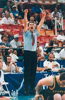 Prior to the start of the 1996 Paralympics, Australia was ranked third in the world after their bronze medal at the 1994 Wheelchair Basketball World Championship, behind first placed Canada and United States.[5][6] In lead up preparations for the games, the team toured Canada.[7] Australia's women's team beat the American team at the Paralympics in pool play. This was viewed as extremely significant by Australian women's wheelchair basketball fans and the Australian Paralympic Federation because the game was invented in America. Also, it was the first time that the Australian women had defeated the Americans. The match had even more significance because Australia needed to win it in order to stay in contention for a medal. Australia was down 21–16 at halftime. Australia went up with seven minutes left in the second half. The match finished with a score of 31–27 in Australia's favour. American Sharon Herbst was their team's start performer and she caused a number of problems for Australia's defence. During the game, several players were knocked out of their wheelchairs, including Australia's Melissa Ferrett.[5] The Americans challenged the win, protesting because they believed the Australians were not wearing matching uniforms.[8] Australia beat Brazil 67–8, beat the USA 31–27 and lost to Germany 34–26 in pool play.[4] They lost to Canada in the semi-finals, going down 31–36. They played the Americans in the bronze medal match, losing 30–41.[5] The team's top scorer in the competition was Liesl Tesch.[5]
