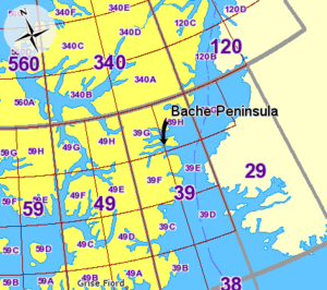 Bache Peninsula is a geological formation in Canada, on Ellesmere Island in Nunavut. The peninsula is considered a cape, meaning that it is a headland that dramatically affects the ocean currents. It is primarily known for being the site of the world's northernmost permanent settlement from 1926 to 1933, a Royal Canadian Mounted Police post.[1]