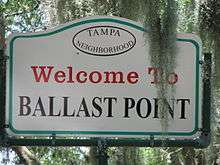 Ballast Point is a neighborhood located in the city of Tampa, county of Hillsborough, and the U.S. state of Florida. It is bordered by Hillsborough Bay, a section of the larger Tampa Bay. The ZIP code serving the area is 33611. The boundaries are Gandy Blvd. to the north, MacDill Air Force Base to the south, Hillsborough Bay to the east and S. MacDill Ave. to the west. Also included are the homes and businesses on the west side of the street of S. MacDill Ave., Gadsden Park on S. MacDill Ave. and the adjacent ELAPP Property which is part of the South Tampa Greenway.