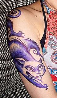 Professional tattoo artists are known to also use ballpoints to create artwork on surfaces other than skin, useful as "flash-art" tattoo samples for display in tattoo parlors.[51] Using ballpoint pens to create artwork is also common among prison inmates, which have been showcased in magazine articles and gallery exhibitions.[52] Separately, inmates have been known to modify ballpoint pen components into tattoo guns for use while incarcerated.[53]