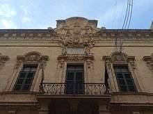 The Banca Giuratale (Maltese: Banka Ġuratali), formerly also known as Banca dei Giurati, the Municipal Palace (Maltese: Palazz Muniċipali), the Palazzo della Città or the Consolato del Mare,[1][2][3] is a palace in Valletta, Malta. It was built in the 18th century to house the city's administrative council, and it was subsequently used as the General Post Office and the Public Registry. The Banca Giuratale now houses the Ministry for the Economy, Investment and Small Business.