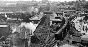 By the 1950s there were an extensive goods yard, a five-road engine shed (on the site of the steel mill), a turntable, three-road goods shed, two signal boxes, an extra footbridge and a subway connecting platforms. There were a total of nine separate through routes from one tunnel to the other.