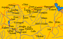 The Hausa Kingdoms were a collection of states started by the Hausa people, situated between the Niger River and Lake Chad. Their history is reflected in the Bayajidda legend, which describes the adventures of the Baghdadi hero Bayajidda culmulating in the killing of the snake in the well of Daura and the marriage with the local queen Magajiya Daurama. According to the legend, the hero had a child with the queen, Bawo, and another child with the queen's maid-servant, Karbagari.[1]