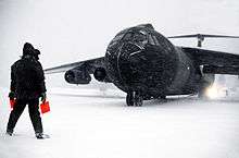 A flight line marshaler directs a C-141B during exercise Alloy Express, 1982. | |||||||||||