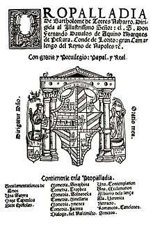 After some years of soldiering and of captivity in Algiers, Torres Naharro took holy orders, settled in Rome about 1511, and there devoted himself chiefly to writing plays. Though he alludes to the future pope, Clement VII, as his protector, he left Rome to enter the household of Fabrizio Colonna at Naples as a chaplain[3] where his works were printed under the title of Propaladia (1517). He is conjectured to have returned to his native place, and to have died there shortly after 1529.[4]