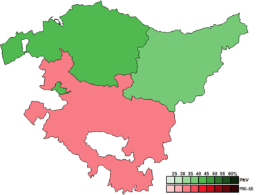 | Provinces won by EAJ/PNV (green) and PSE–EE (PSOE) (red) | |||||||||||||||||||||||||||||||||||||||||||||||||||||||||||||||||||||||||||||||||||||||||||||||||||||||||||||||||||||||