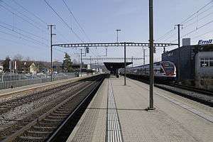 Bassersdorf is a railway station in the Swiss canton of Zurich and municipality of Bassersdorf. The station is located on the Zurich to Winterthur main line, to the east of the point where the Zürich Airport and Kloten branches of that line diverge. It is an intermediate stop on Zurich S-Bahn services S7 and S16.[1][2][3]