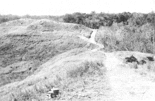 ![]() An American Marine stands near some of the fighting positions on Hill 123 on "Edson's" Ridge after the battle. Edson's command post during the battle was located just to the right of where the Marine is standing. | |||||||