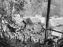 By 10 October, the Australians had occupied Myola, after which work parties were sent forward re-establish the Australian supply base around the dry lake.[24] The initial Australian assault saw the 2/33rd Infantry Battalion advance against the Japanese position around Myola Ridge on 11 October, while the 2/25th Infantry Battalion advanced to Mount Bellamy, where they came up against the Japanese on the eastern approaches around Templeton's Crossing II. The following day, the Militia 3rd Infantry Battalion provided a supporting effort to the 2/33rd around Myola Ridge, which resulted in limited gains for the Australians.[25] Between 15 and 17 October, as the Australian 16th Brigade came up to support those of the 25th, the Japanese detachments withdrew north concentrating on the western side of the creek near Templeton's Crossing II. Japanese artillery then began to engage the lead elements of Maroubra Force in order to slow their advance.[25]