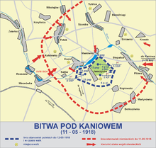 Battle of Kaniv, or Battle of Kaniów took place during World War I on the night of 10–11 May 1918, near Kaniv, Ukraine (Ukrainian: Канів, Polish: Kaniów) between Polish and German army troops. The fighting pitted the Polish II Corps in Russia (including Brigade II of the Polish Legions), under general Józef Haller von Hallenburg, against the German Imperial Army (including the 28th Landwehr Brigade), under general Zierhold. Ultimately the Germans were victorious with about half of the Polish forces surrendering and the rest retreating in disarray.[1]