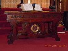 The Rev. Alfred De W. Mason was pastor in 1890. On December 7, 1890 the evening service was occupied in the formal receiving of a baptismal font, communion table, kneeling stool and collection plates given to the church by the members of the Bergen family.