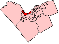 Bay Ward or Ward 7 (French: Quartier Baie) is a municipal ward in Ottawa, Ontario, Canada. It covers much of the western portion of the old city of Ottawa as well as some portions of what was once Nepean. The ward runs from Sherbourne and Maitland in the east to March Road in the west. The southern border is the Queensway while the northern border is the Ottawa River. The ward makes up the northern portion of the federal and provincial riding of Ottawa West-Nepean.