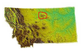 The Bears Paw Mountains (Bear Paw Mountains, Bear's Paw Mountains or Bearpaw Mountains)[1] are an insular-montane island range in North-Central Montana, USA, located approximately 10 miles south of Havre, Montana. Baldy Mountain, which rises 6,916 feet (2,108 meters) above sea level, is the highest peak in the range. The Bears Paw Mountains extend in a 45-mile arc between the Missouri River and Rocky Boy Indian Reservation south of Havre.
