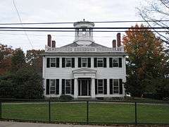 The Beebe Estate, built in 1828, is a historic house at 235 W. Foster Street in Melrose, Massachusetts. The two story building is a sophisticated expression of Greek Revival architecture, with corner pilasters, and a front entry portico with fluted Doric columns and a gabled pediment. A railing surrounds the hip roof, which has a cupola at its center. The house was built in 1828 by William Foster, a Boston merchant, as a summer house, and was owned from 1854 to 1963 by members of the Bigelow and Beebe families.[2]