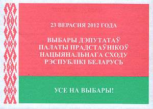 - ↑ Legitimate parliament elected in Belarus Belarusian Telegraph Agency, 24 September 2012