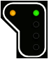 ![]() | Green-yellow vertical: allows the passage at full speed and warns of a short section: the distance between the signal following and that follows is shorter than the distance normally required to perform the action required . | |