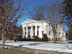 Bellinger–Dutton House is a historic home located at Middleburgh in Schoharie County, New York, United States. It is a two-story, heavy timber framed structure built in 1846 in the temple front Greek Revival style. It features a hipped roof and a massive Classical portico with four fluted Doric order columns. Also on the property are a frame carriage barn, garden house / playhouse, and square brick smokehouse.[2]