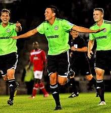 ![]() Ben Wright (centre) celebrates scoring for Forest Green Rovers in 2012–13 | |||
