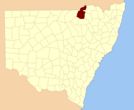 | Collymongle | Moree Plains Shire | 29°26′54″S 148°44′04″E / 29.44833°S 148.73444°E / -29.44833; 148.73444 (Collymongle) |