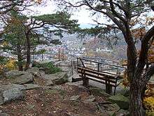 The Bergstein is described as a rock group and lies at an elevation of ca. 354 metres at the eastern end of the Palatinate Forest and is part of the Weinbiet massif. The Bergstein lies above the Speyerbach valley and has a view of the valley and the town of Neustadt. It is accessible and is protected by railings. It is only accessible on footpaths.