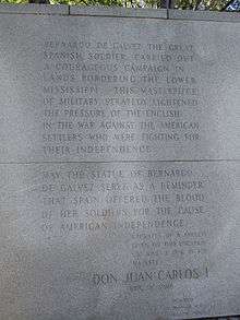- ↑ "GáLVEZ, Bernardo de: Memorial near the State Dept in Washington, D.C. by Juan De Avalos located in James M. Goode's Foggy Bottom area". Dcmemorials.com. 1976-06-03. Retrieved 2012-05-21.