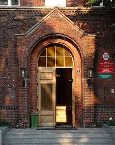 The building was constructed from 1890 to 1892, on a design by architect Carl Meyer.[25] By 1920, it served as the first school for girls ((German) Erste Mädchen von Volkschule). In 1921, the building housed a Polish primary school "K. Piramowicz". It was a 7-class, primary school, for which headmaster in 1925 was Father Smarzyk, and in 1933 Father Menzel. By 1930, it functioned together with the German, evangelical primary school, located in a wing of the building. In 1933 were created two schools of mixed (girls and boys) pupils.[26]
