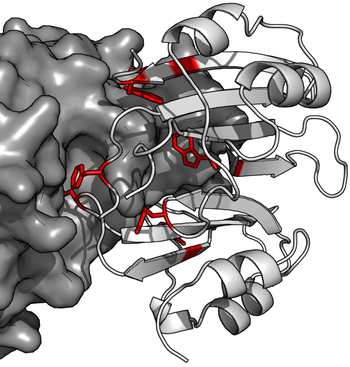 - ↑ Lim D, Park HU, De Castro L, Kang SG, Lee HS, Jensen S, Lee KJ, Strynadka NC (October 2001). "Crystal structure and kinetic analysis of beta-lactamase inhibitor protein-II in complex with TEM-1 beta-lactamase". Nat. Struct. Biol. 8 (10): 848–52. doi:10.1038/nsb1001-848. PMID 11573088.