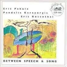 Between Speech & Song is an album by a jazz band co-led by alto saxophonist Eric Pakula, pianist Pandelis Karayorgis and drummer Eric Rosenthal, which was recorded in 1993 and released on Cadence Jazz.[1]