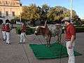 - Bevo XIV with his four Silver Spur Handlers at a baseball game