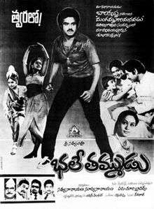 Bhale Thammudu is a 1985 Telugu, drama film produced by Satyanarayana, Suryanarayana on Satya Chitra banner, directed by Paruchuri Brothers. Starring Nandamuri Balakrishna, Urvashi in the lead roles and music composed by Chakravarthy.[2]