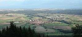 The municipality is located at the foot of the Jura Mountains in the middle of a largely agricultural valley.