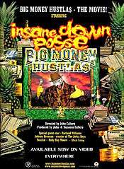 Big Money Hustlas is a 2001 American comedy film directed by John Cafiero as his feature film debut. The film, an homage to exploitation films of the 1970s, focuses on a streetwise San Francisco detective who tries to take down a New York City crime lord. It stars Insane Clown Posse's Joseph "Violent J" Bruce and Joseph "Shaggy 2 Dope" Utsler, and Twiztid's Jamie Spaniolo and Paul Methric, and features appearances by Harland Williams, John G. Brennan, Rudy Ray Moore, Mick Foley and The Misfits. Released direct-to-video, the film debuted at #1 on Billboard's Top Music Videos chart, and was later certified platinum by the RIAA. A Western genre follow-up, Big Money Rustlas, was released direct-to-video on August 17, 2010. In 2015, Insane Clown Posse announced the production of a sequel entitled Big Money Thrusters.