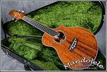 The mandolele is a nylon-stringed mandolin with four strings rather than eight. Griffin built it to achieve the soft tone characteristic of nylon-stringed instruments such as the ukulele, combined with the tuning and feel of an F5 mandolin. The tuning is the same as that of an F5, as is the scale length and overall feel of the instrument. Griffin stated that the idea behind the mandolele is that "mandolin players can enter new musical ground with the instrument." Griffin's use of it has primarily been in Hawaiian music.[1] He says that "It inspires me to play differently simply because the tone is not what you'd expect from a mandolin."