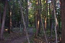 The north section of the park is designated as a wilderness area, with no development of any kind. Most of the park once formed an island and shorelines at the end of the last ice age. The soil is very sandy, and the area has many stunted oak trees. There are many gravel pits that surround the park. Birds Hill Park provides one of the largest concentrations of white tailed deer in North America. The Birds Hill upland (including the Park) supports Canada's largest population of Western Silvery Aster, a species protected under federal and provincial Endangered Species laws.[2]
