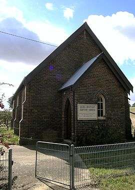 Black Mountain Baptist Church was built there in 1902 and restored in 1992. Black Mountain has a Public School and nursery which is the home of the award winning three point linkage Youman Tree Planter machine and services. Booroolong Railway Station Post Office opened on 8 December 1884, was renamed Black Mountain around 1886 and closed in 1985.[2]