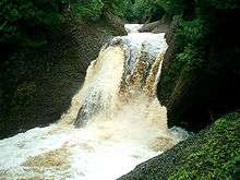 The Black River is a 41.1-mile-long (66.1 km)[2] river on the Upper Peninsula of the U.S. state of Michigan, flowing mostly in Gogebic County into Lake Superior at 46°40′03″N 90°02′57″W / 46.66750°N 90.04917°W.[1] Its source at 46°18′54″N 90°01′15″W / 46.31500°N 90.02083°W[1] is a boreal wetland on the border with Iron County, Wisconsin. The northern section of the river, 14 miles (23 km) within the boundaries of the Ottawa National Forest, was designated a National Wild and Scenic River in 1992.