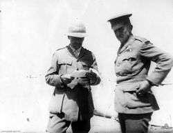 With the outbreak of the First World War, Swannell enlisted in the Australian Imperial Force, was appointed to the rank of major and posted to Egypt, travelling on the SS Afric.[2][17] In April 1915, Swannell was part of the Australian forces sent to partake in the Gallipoli Campaign; an attempt to capture the Ottoman city of Istanbul. Swannell and his men from D Company[36] of the 1st Battalion, transported on the troopship SS Minewasska, landed at the peninsula on 25 April, and were immediately involved in heavy fighting[17] after being diverted to reinforce the 12th Battalion.[37] In the buildup to the assault on the hill known as Baby 700, Swannell and his men were pinned down under heavy enemy fire, and while attempting to show his men the best method of aiming their rifles, he was shot in the head and killed.[17] He is commemorated at Baby 700 Cemetery in Gallipoli,[38] and also with a plaque on the walls at Weston-Underwood church in Buckinghamshire.[8]