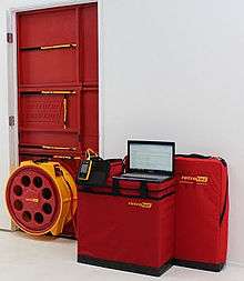 A blower door is a machine used to measure the airtightness of buildings. It can also be used to measure airflow between building zones, to test ductwork airtightness and to help physically locate air leakage sites in the building envelope.[1]