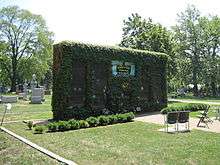 In 2009, the cemetery added a columbarium specially dedicated to Chicago Cubs fans.[13] The structure is a replica of Wrigley Field's red brick wall, with a stained glass image of the stadium's scoreboard and a yellow 400 foot (120 m) marker. The wall contains 288 niches, and seats from Wrigley Field have been placed along its base. A Cubs fan named Dennis Mascari helped raise funds for the project in hopes of making visits to the cemetery less depressing. The cemetery agreed to let him build the columbarium on their grounds, but nixed a plan to broadcast Cubs games through a nearby speaker. The Cubs themselves were not directly involved with the project; Mascari worked with Eternal Images, which makes baseball-themed funerary products.[13]