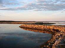 Bolshaya Muksalma (Russian: Большая Муксалма) is one of the Solovetsky Islands. Bolshaya Muksalma is situated to the east of Bolshoy Solovetsky Island and is separated from it by two straits: Severnye Zheleznye Vorota and Yuzhnye Zheleznye Vorota (literally translated as Northern and Southern Iron Gates). The Yuzhnye Zheleznye Vorota Strait is crossed by a dam which was built by the monks of Solovetsky Monastery between 1865 and 1871 and now connects the two islands. The dam is several hundred meters long and 6.5 metres (21 ft) wide. Southeast of Bolshaya Muksalma, there is Malaya Muksalma Island, as well as a number of tiny islets. The area of Bolshaya Muksalma is 17 square kilometres (6.6 sq mi). In terms of the area, this is the third island of the archipelago behind Bolzhoy Solovetsky and Anzersky Islands.