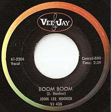 "Boom Boom" is a song written by American blues singer/guitarist John Lee Hooker and recorded in 1961. Although a blues song, music critic Charles Shaar Murray calls it "the greatest pop song he ever wrote".[1] "Boom Boom" was both an American R&B and pop chart success in 1962 as well as placing in the UK Singles Chart in 1992.
