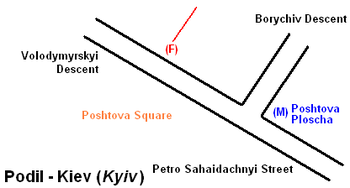Borychiv Descent (Ukrainian: Боричів узвіз, translit.: Borychiv uzviz) is a historic descent in the historical and merchant quarter of Kiev, the Podil (Podol) neighbourhood. It is located near the Poshtova Square.