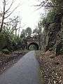 To the east of the station, the former railway line crosses over the North Clyde Line.