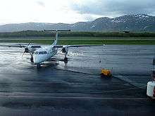 Brønnøysund Airport, Brønnøy (Norwegian: Brønnøysund lufthavn, Brønnøy; IATA: BNN, ICAO: ENBN) is a regional airport located at the town of Brønnøysund, in the municipality of Brønnøy, Nordland county, Norway. The airport is owned and operated by the state-owned Avinor and serves the southern part of Helgeland. It has a 1,200-by-30-meter (3,937 ft × 98 ft) runway numbered 04–22[1][3] and is served by Widerøe, which operates their Bombardier Dash 8 aircraft to Oslo, Trondheim, Bodø, Bergen and other airports in Helgeland. The airport also serves offshore helicopter flights by CHC Helikopter Service to Norne and temporary oil rigs in the Norwegian Sea. In 2014, the airport served 117,471 passengers, making it the second-busiest regional airport in Norway, after Florø Airport.
