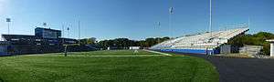 Seating capacity has increased by 6,200 seats since 1980 (5,000 in 1980 and 1,200 in 1998). The original playing surface featured a sand foundation that enabled the field to withstand six inches (152 mm) of rain at one time without altering the footing;[2] however, that surface was replaced with ProGrass synthetic turf during the summer of 2010.[3]