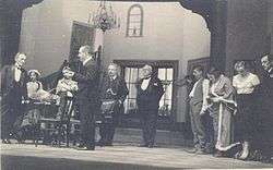 Through his plays, Nušić presented Serbian society and the mentality of the middle class in small towns and counties. He brought to the stage not only the retailers, canton captains, semi-educated officers, and current and former ministers' wives, but also formerly distinguished and overly ambitious householders, their decadent sons, failed students, distinguished daughters of marriageable age, and greedy upstarts.[9]